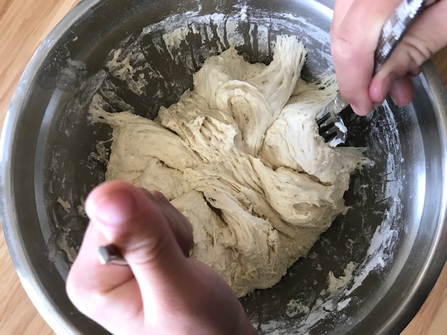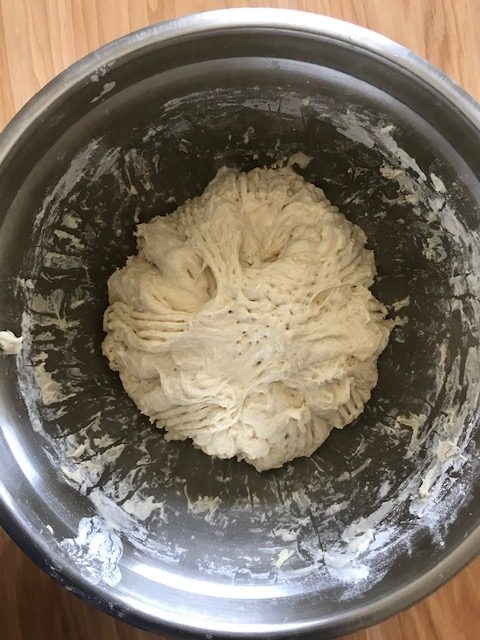 - Use two forks to deflate the easy peasant dough by releasing it from the side of the bowl and pulling it toward the center. Rotate the bowl as you deflate, turning the mass into a rough ball.