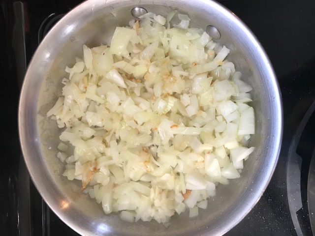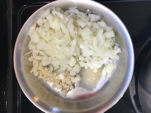 and salt in a saucepan on medium heat until the onions are translucent. About 6 minutes. Stir the entire time.
